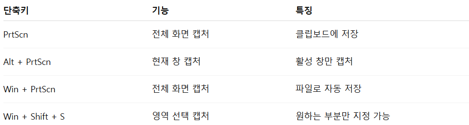 아래 표만 기억해도 대부분의 캡처 상황은 해결됩니다.